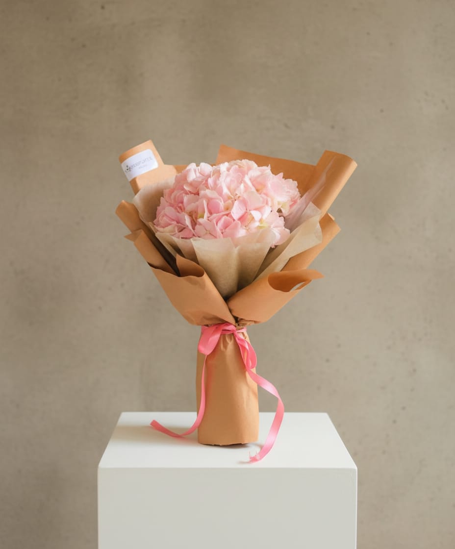 This arrangement consists 1 Blooms of Pink or Blue Hydrangea
