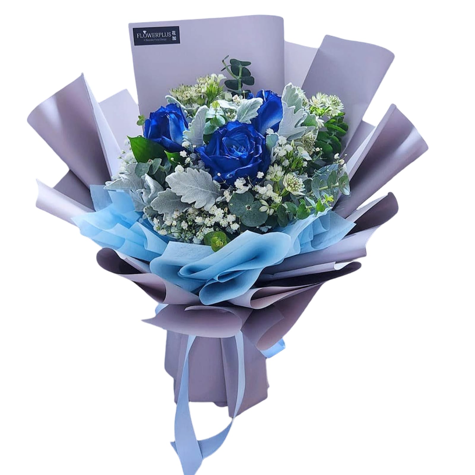This unique ice blue rose bouquet is perfect for birthday, surprise or anniversary gift. Eleven stalks of roses represent the only you or only love.