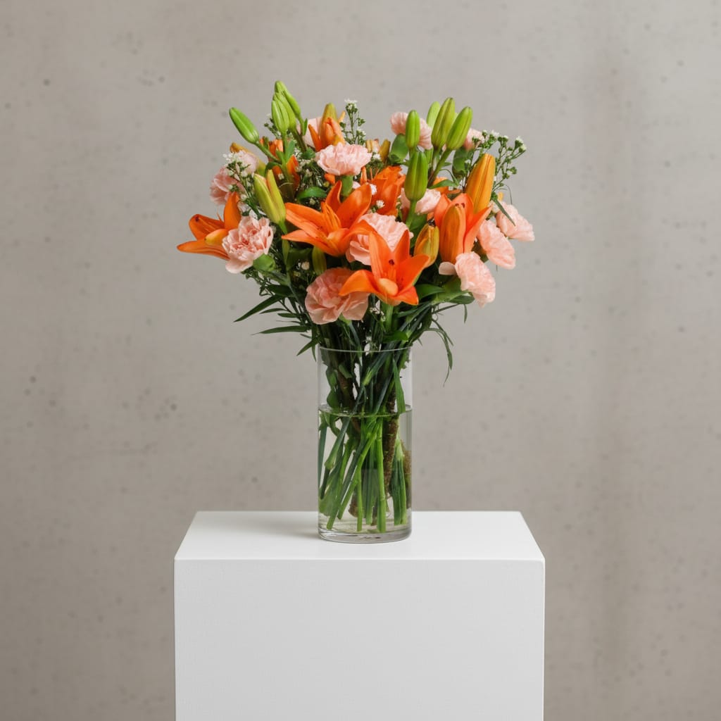 Inspired by the capital of Malta in the Mediterranean, Valletta comes as a splendid collection of orange lilies, pink carnations accompanied by white phoenix . - This arrangement is not only great for birthdays but is also the perfect get well soon gift and many other occasions.
